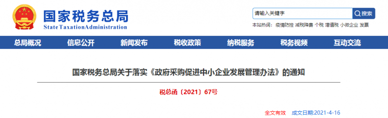 为落实《财政部 工业和信息化部关于印发〈政府采购促进中小企业发展管理办法〉的通知》(财库〔2020〕46号,以下简称《办法》)要求,发挥政府采购政策功能,促进中小企业发展,结合税务系统实际,现将有关事项通知如下: