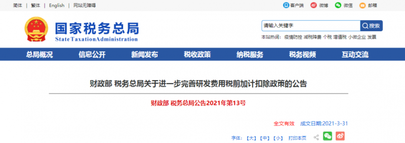 账易执言:研发费用加计扣除政策能够减少企业所得税应纳税所得额,相当由国家分摊了企业的部分研发成本,缓解企业的创新发展压力。